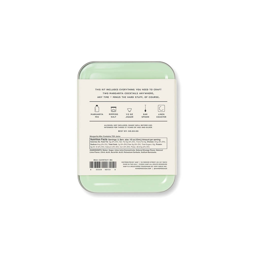 The Margarita Cocktail Kit contains all the premium ingredients needed to create 2 top-shelf Margaritas wherever you are - just grab your tequila of choice and mix it up. Includes the tools to craft two classic Margaritas anywhere— just add the hard stuff (or seltzer) and enjoy.