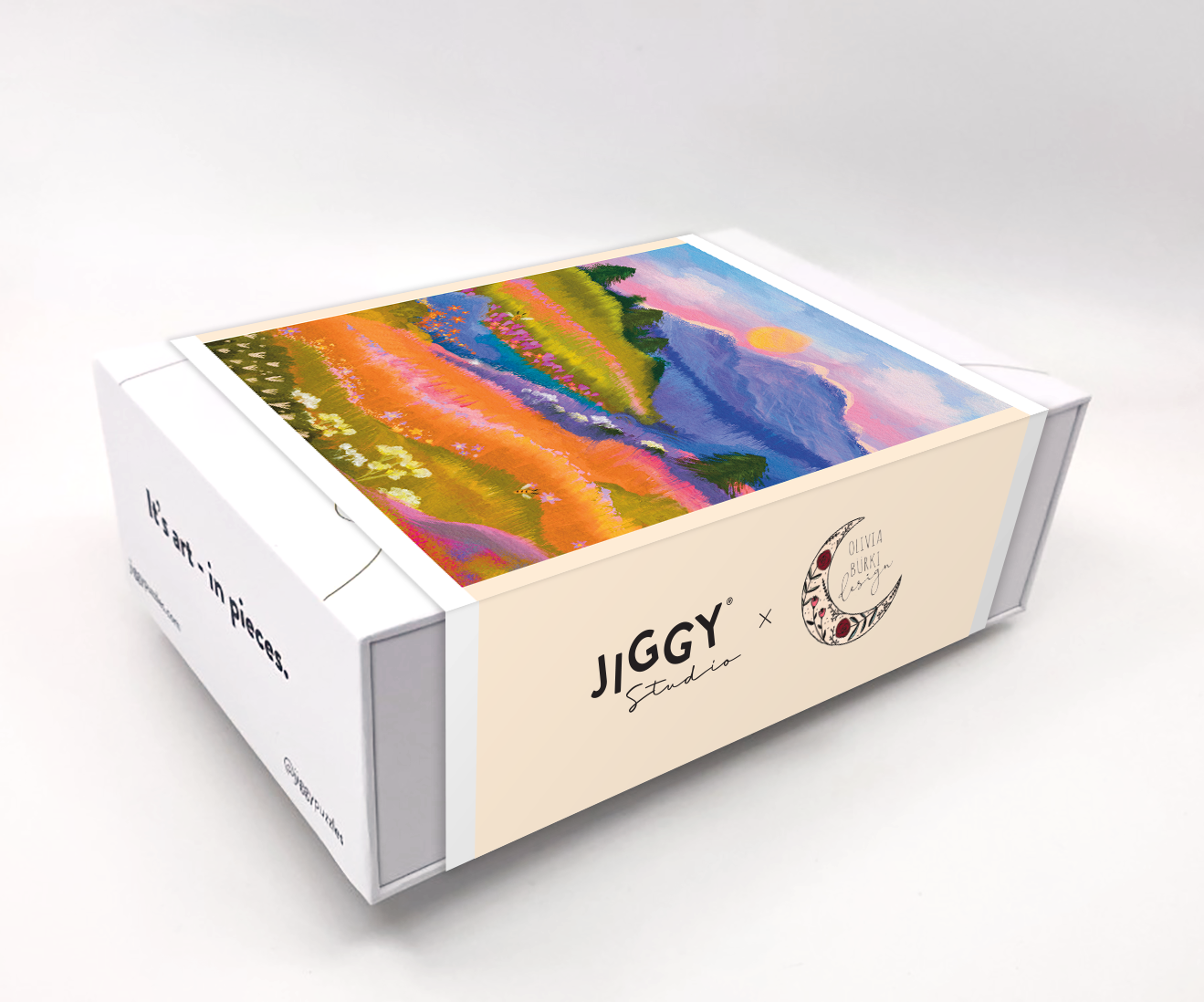 Hi, I’m Olivia - a Swiss freelance illustrator, currently living in Spain. Drawing has always been one of my biggest passions and I‘m thankful to be a full time artist beside being the mom of a little boy. I love being in nature & listening to dreamy music with a psychedelic buzz. Follow Olivia @oliviabuerkidesign Size: 500 piece puzzle Puzzle dimensions: 20 x 16 inches Box dimensions: 9 x 6 x 3 inches Each JIGGY Studio puzzle comes in a reusable drawstring bag, box and includes puzzle glue to preserve your masterpiece.