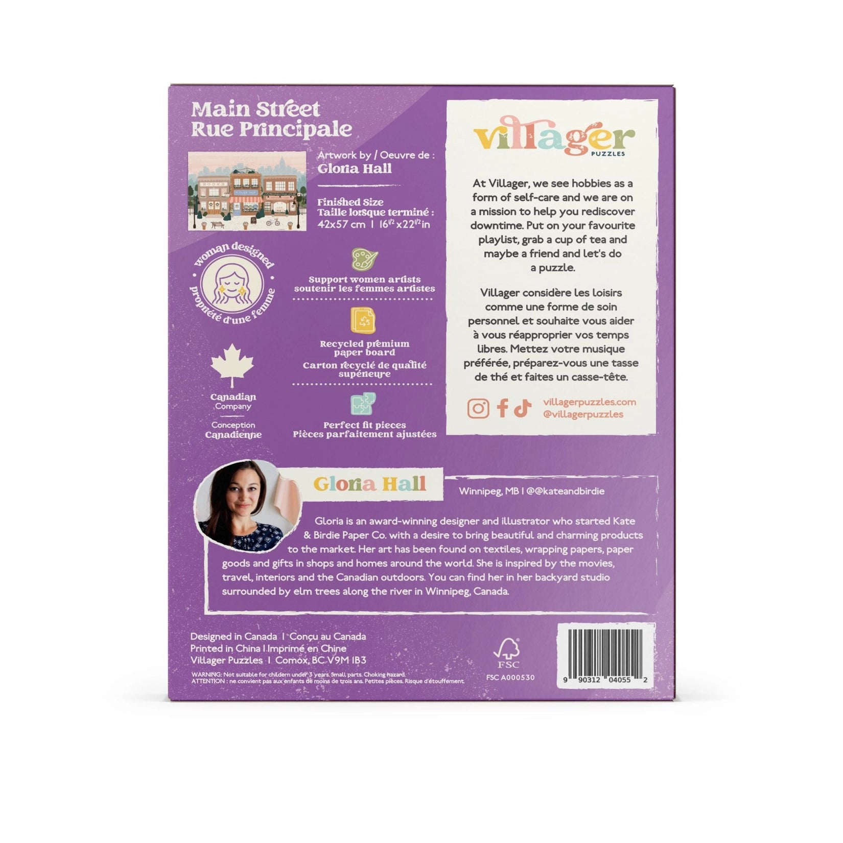 Stroll down a quaint Main Street with this picturesque puzzle, capturing the charm of local shopping. Piece together the dainty details of the flower shop, cozy café, and inviting bookstore, each brimming with small-town warmth. Beautifully illustrated by Winnipeg artist, Gloria Wall of Kate & Birdie Paper Co.