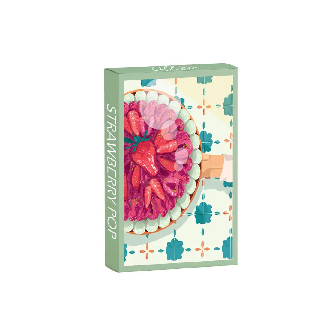 This mini puzzle of 99 pieces invites you to savor the elegance of a strawberry tart, where the red and juicy fruits rest on a golden crust, delicately surrounded by a sweet meringue embrace. The illustration captures the dance of colors and flavors, evoking the freshness of seasonal strawberries and the airy lightness of meringue. A visual celebration of pastry, where simplicity and refinement meet harmoniously.