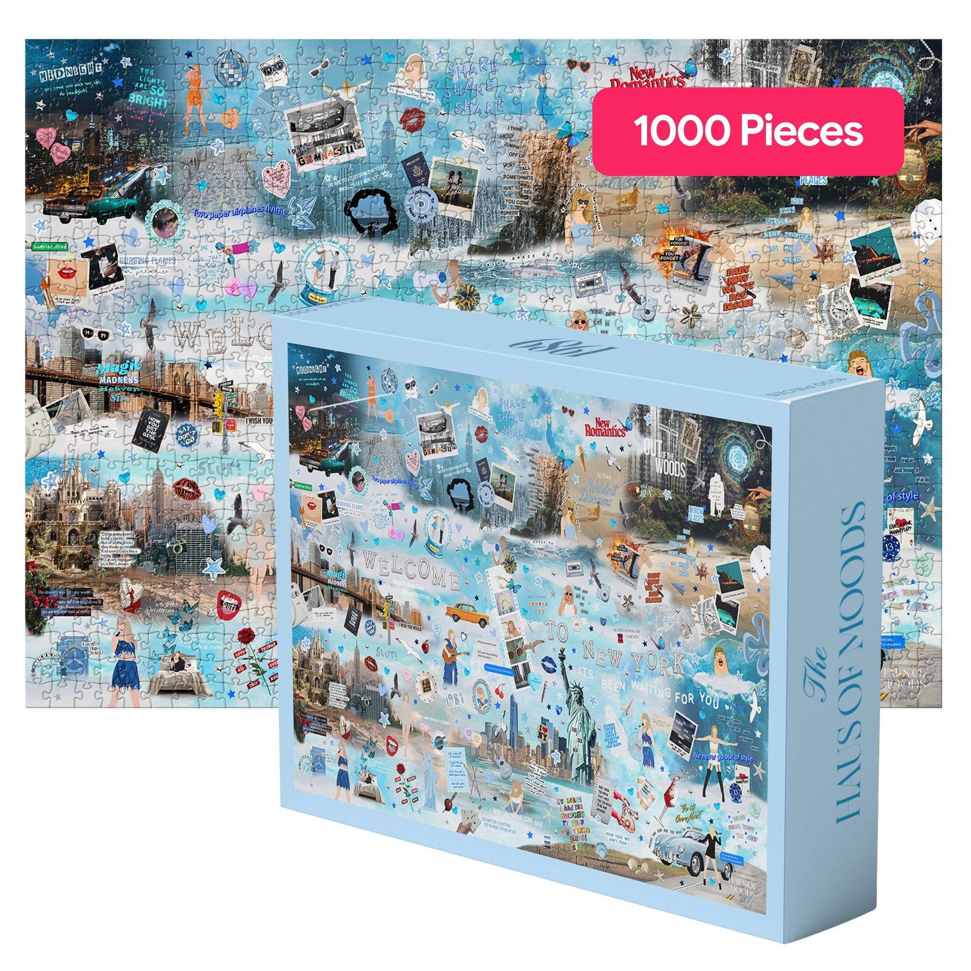 Step into the sparkling, high-energy world of 1989 with this Swiftie-approved jigsaw puzzle. The 1989 Lyrics & Easter Eggs Puzzle is a crisp, vibrant celebration of the era that redefined pop music — packed with hidden lyrics, clever Easter eggs, and visual winks just waiting to be uncovered. Crafted for fans who know every word by heart, this collage-style design captures the spirit of reinvention, freedom, and bold self-expression. 🧩 1000 Pieces 🖤 Puzzle Dimensions: 30" x 20" (Completed Size) ♻️ Eco-Friendly Materials: Crafted with 90% recycled chipboard + printed with non-toxic inks 🎨 Vibrant Colors: Matte finish for minimal glare and maximum mood Why You'll Love It: 🧩 Loved by Thousands: 20,000+ happy customers and 2,000+ five-star reviews 🚚 Fast U.