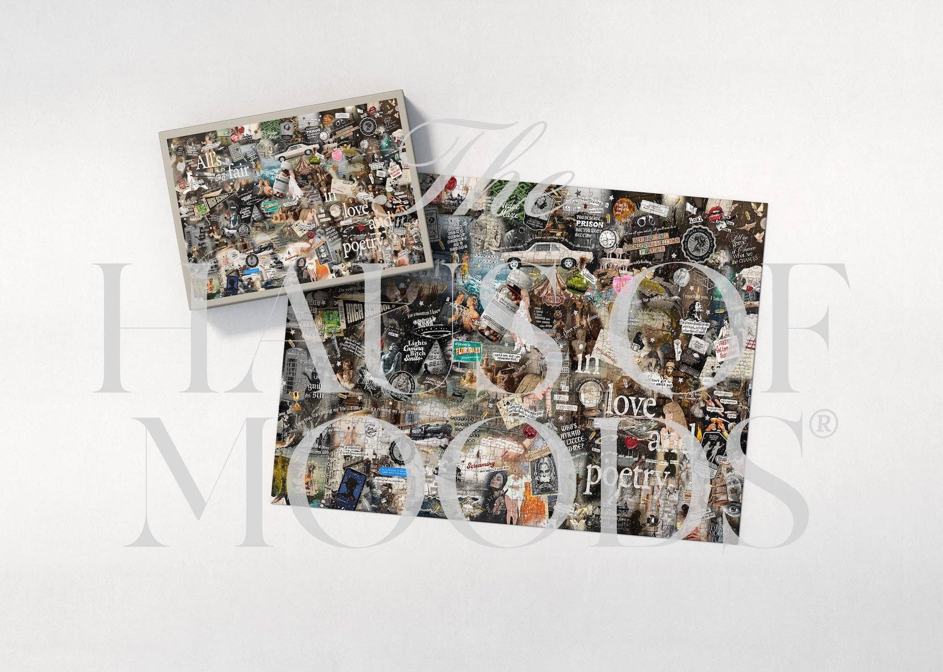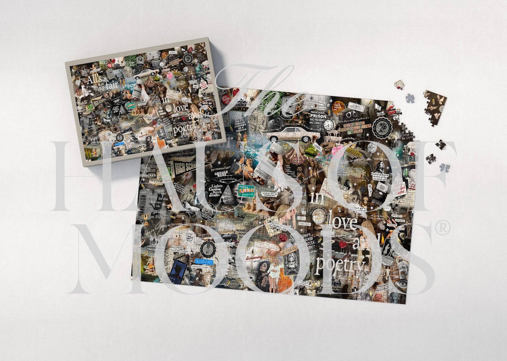 For the romantics, the writers, and the gloriously emotionally unwell—introducing our most dramatic drop yet: The Tortured Poets Puzzle. 🖤 This collage-style masterpiece is a 1000-piece love letter to heartbreak anthems, midnight confessions, and literary longing. Featuring embroidered patch-style graphics, lyric nods, moody motifs, and hidden Easter eggs, this puzzle captures the raw, emotional spirit of The Tortured Poets Department era with a Haus of Moods twist. Can you spot all the hidden references and wordplay woven throughout the design? Perfect for solo puzzlers, weekend hangs with friends, or the ultimate gift for the Swiftie in your life.