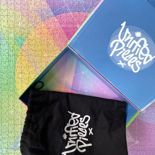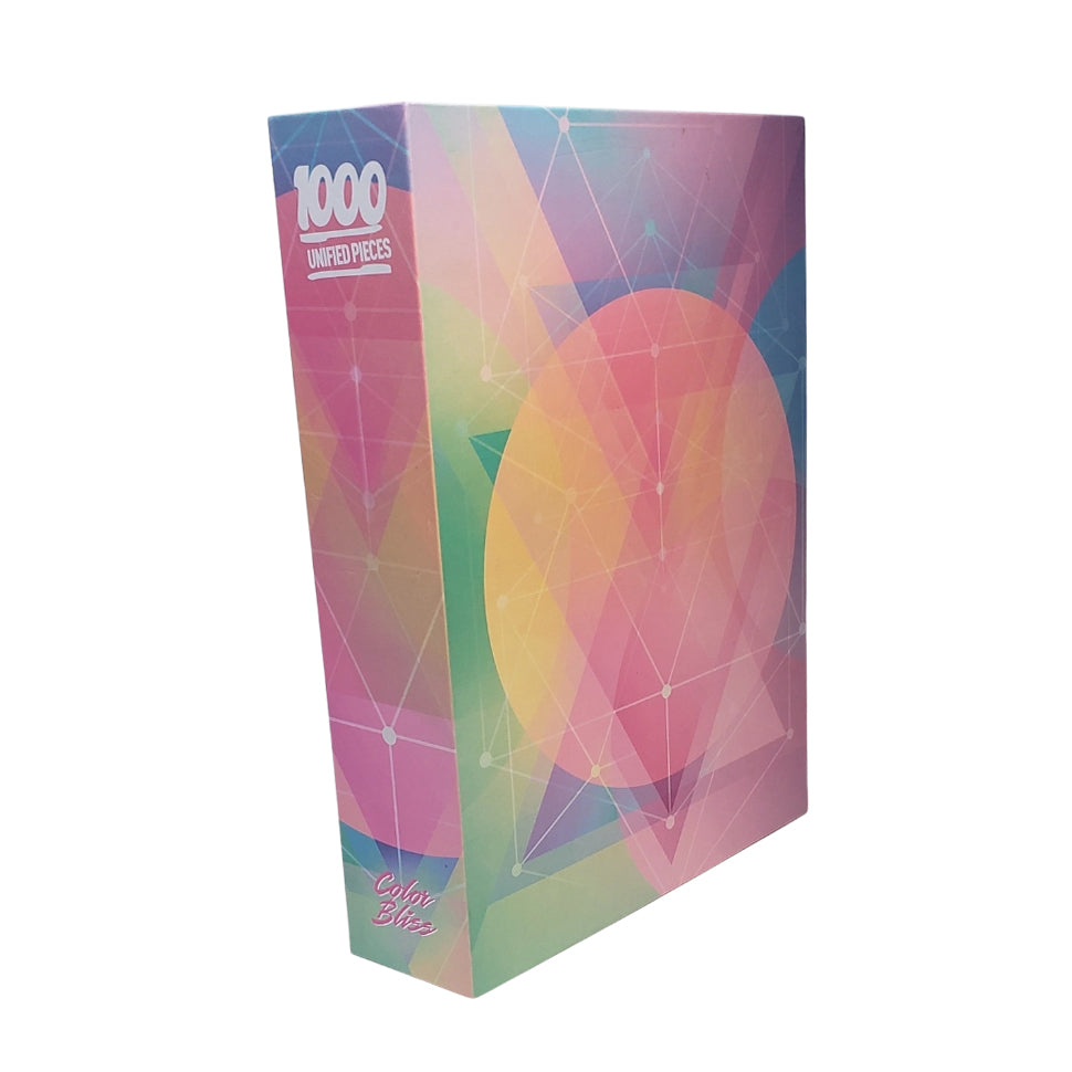 Dive into a world of color and tranquility with the Color Bliss puzzle. This 1000-piece jigsaw puzzle, designed for adults, features an irregular cut that enhances the traditional puzzling experience. The artwork, crafted by Gamaliel, the founder of Unified Pieces, showcases a stunning symphony of color gradients, shapes, and lines. Printed on a velvet soft-touch, linen/matte finish that reduces glare, this puzzle offers both a visually and tactilely satisfying experience. Packaged in a magnetic box, it includes a large poster of the design and a zipper bag for easy storage. Made from non-toxic materials, soy-based inks, and recyclable cardboard, Color Bliss ensures a high-quality, non-tech meditative experience. Enjoy minimal puzzle dust and the excellent fit of the thick, ribbon-cut pieces. Frame your completed masterpiece, measuring 27” x 20” (70cm x 50cm), to add a vibrant touch to any space.